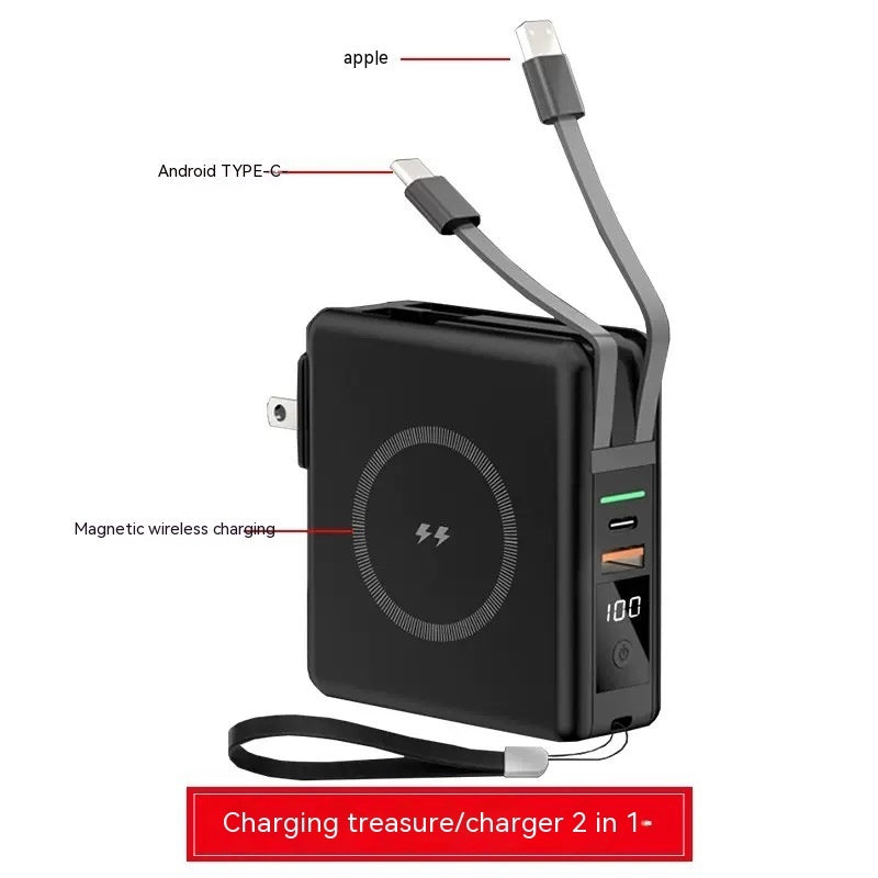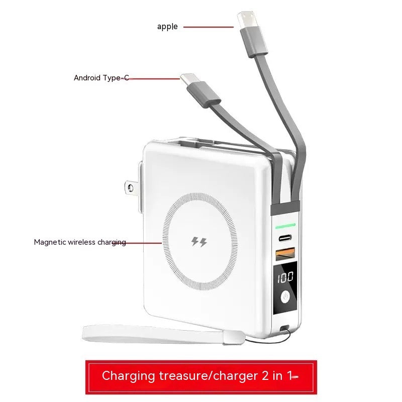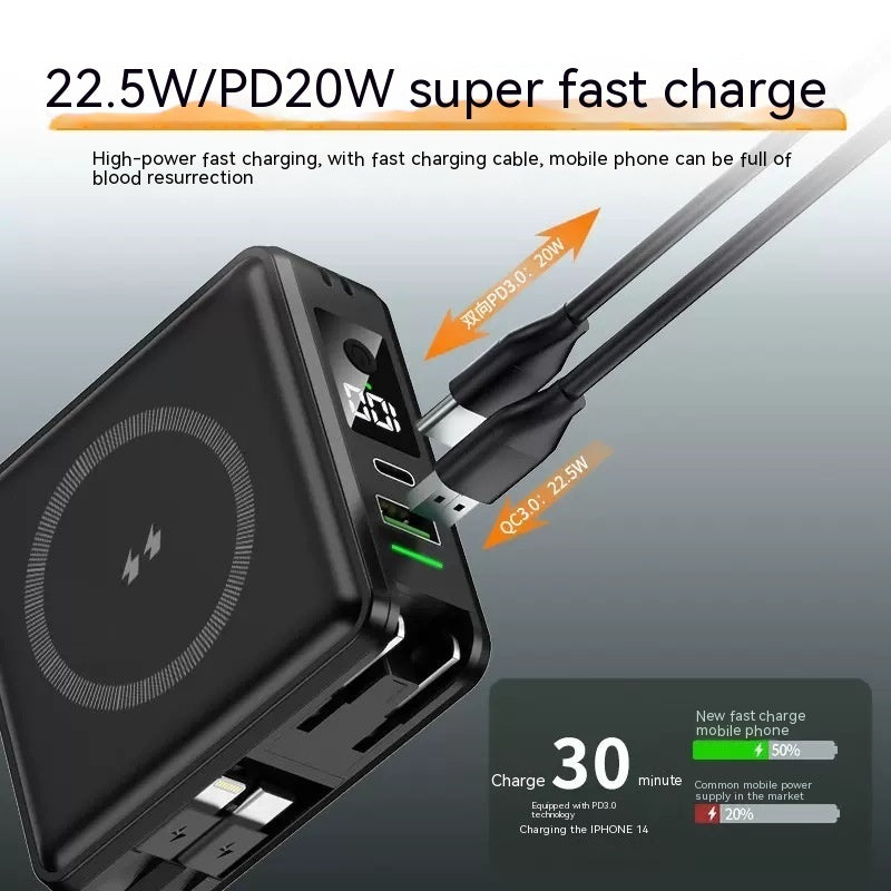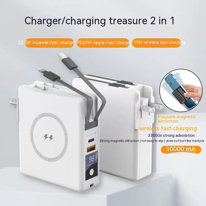 Magnetic Wireless Fast Charge Power Bank 10000mAh With Plug is a powerful and convenient portable charging solution designed for modern smart devices. With a 10000mAh high-capacity battery, this power bank provides long-lasting backup power to keep your devices running throughout the day.