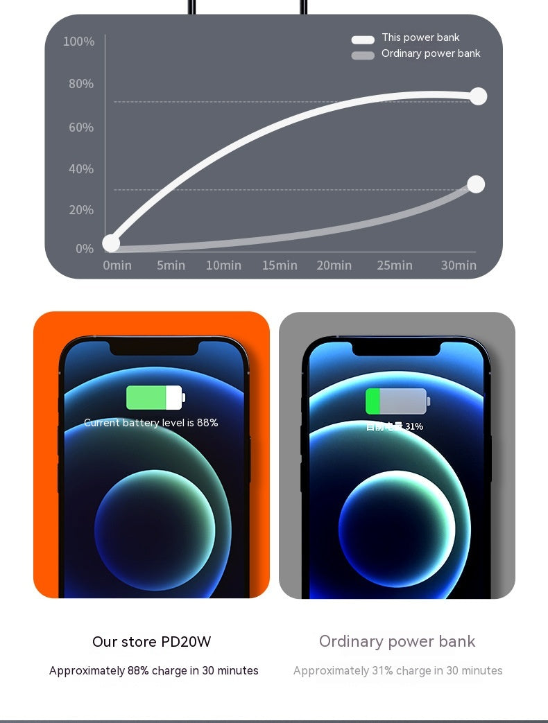 The PD 66W Fast Charge 20000 mAh Mobile Power Supply is a high-performance portable charger built to keep your devices powered wherever you go. With a large 20000 mAh battery capacity, it delivers reliable, long-lasting power — ideal for busy days, travel, outdoor activities, or emergencies when you can’t access a wall outlet.
