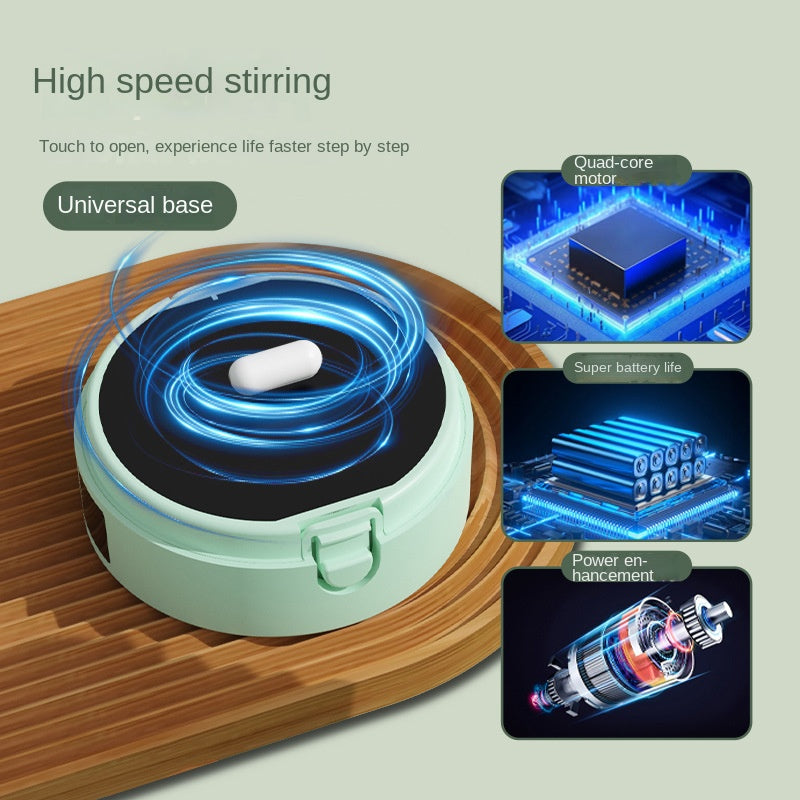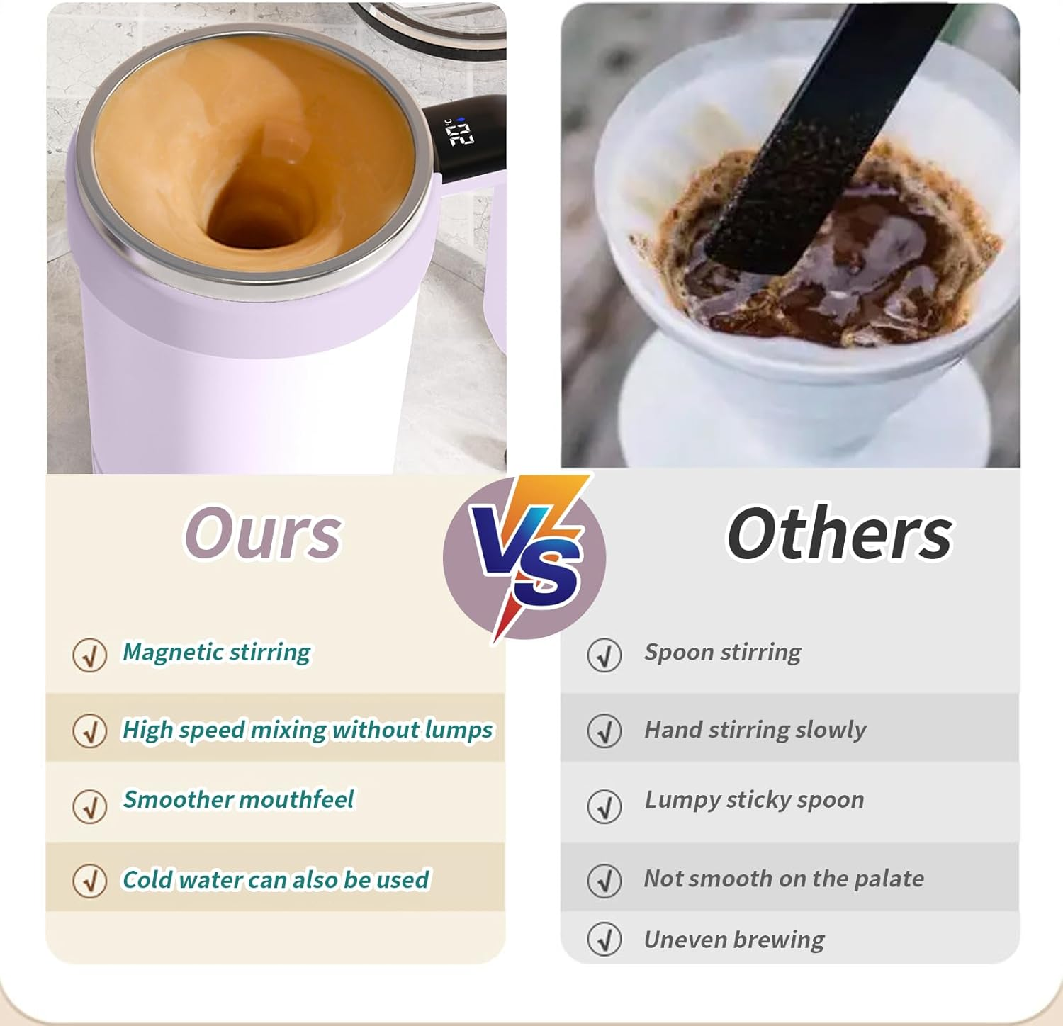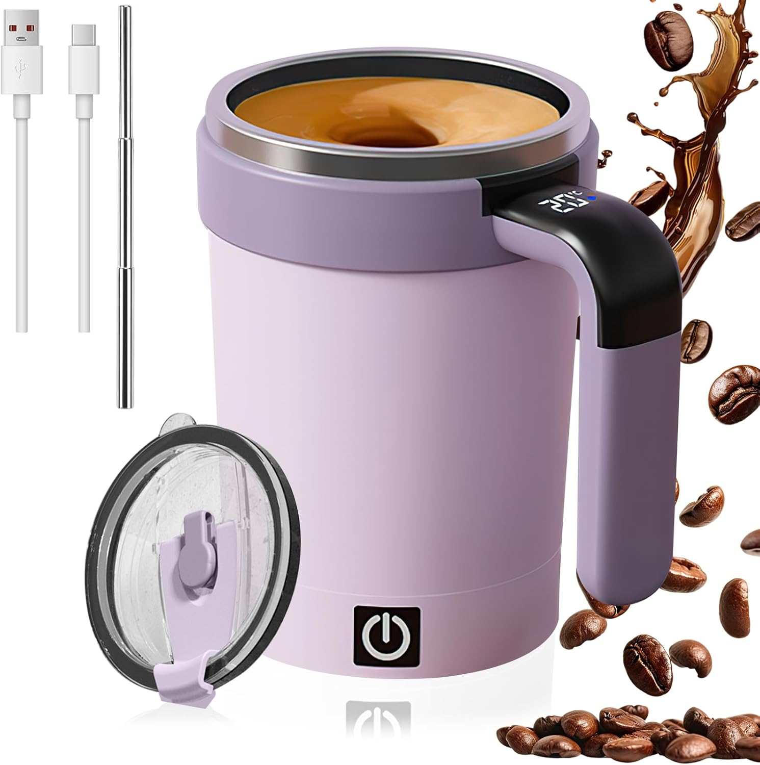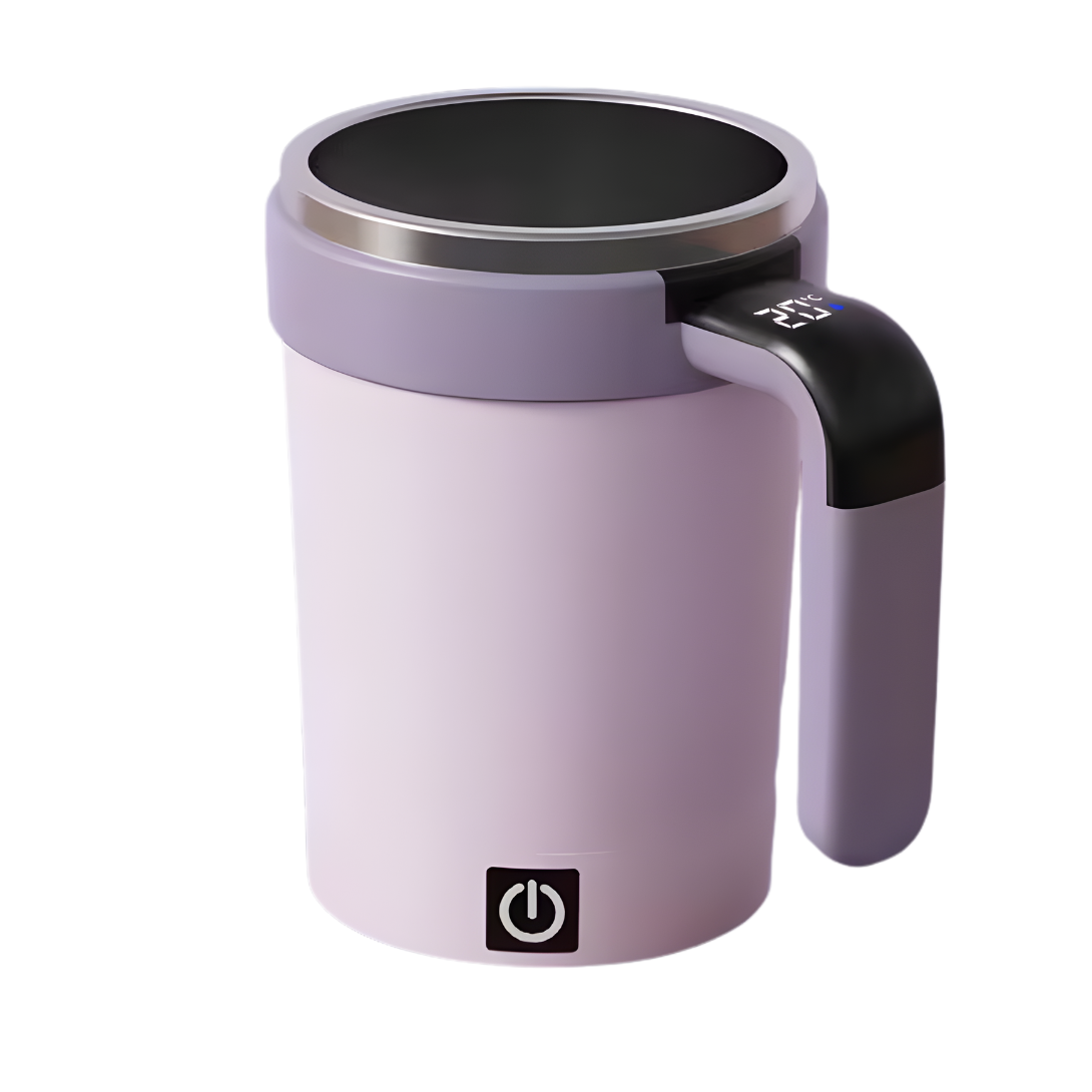 A smart self‑stirring mug with a digital temperature display built into the handle for instant, safe temperature checks. Double‑click to activate magnetic stirring that blends coffee, protein, cocoa, and more into a smooth, lump‑free drink. The 380 ml, BPA/PVC‑free build combines food‑grade PP with 304 stainless steel for durability and taste neutrality. A 360° leak‑proof, detachable design and wide mouth make cleaning simple. Rechargeable via USB with real‑time power indication—ideal for office, travel, and workouts.